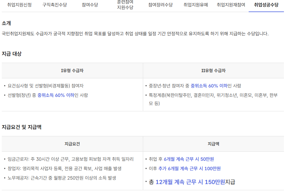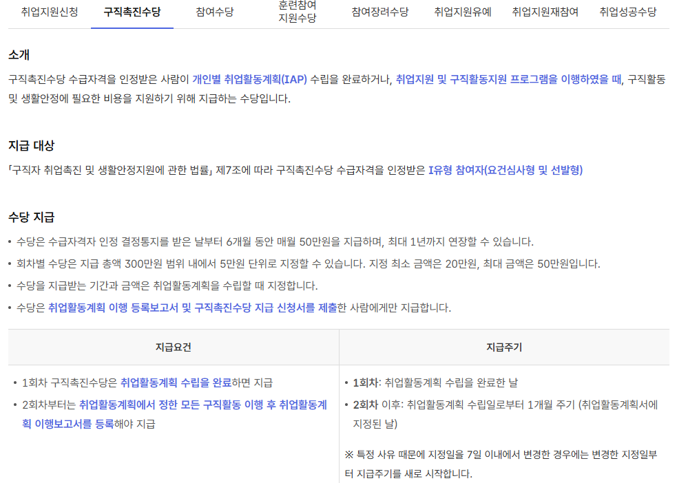 Ⅰ유형 – 소득지원(구직촉진수당) + 취업지원 서비스