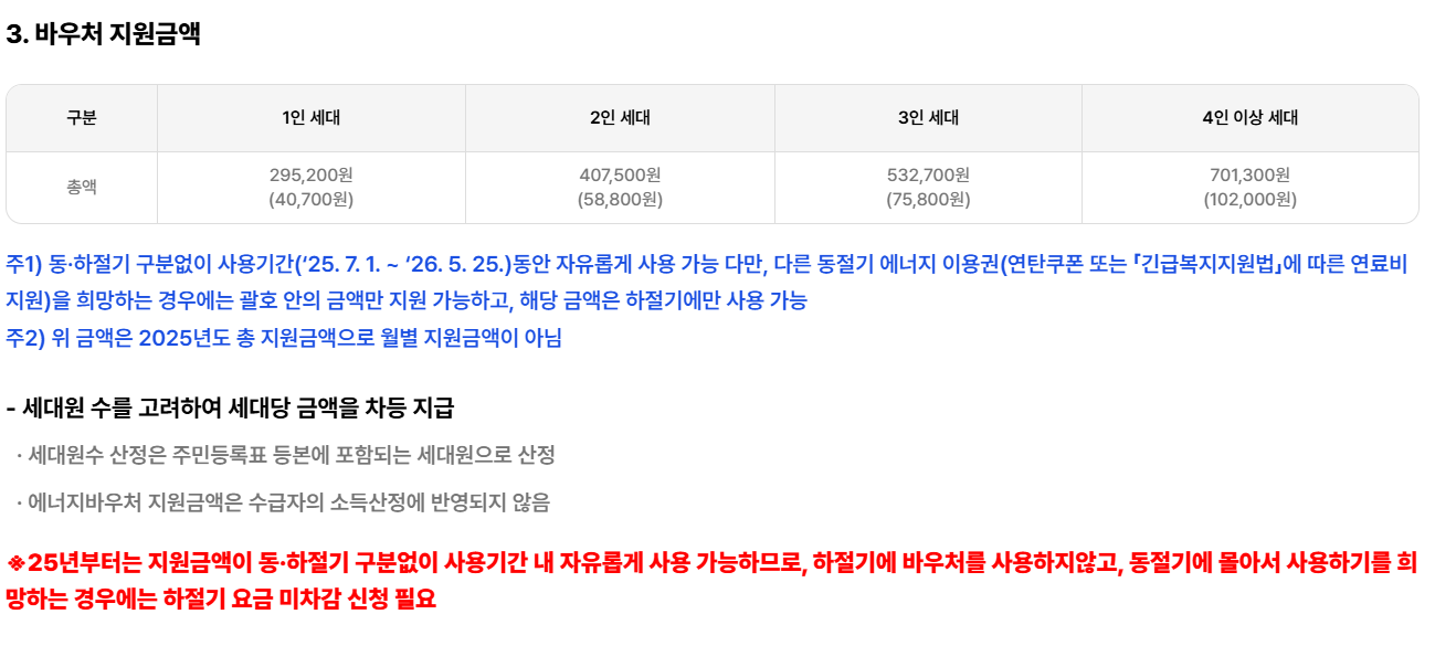 2025년에는 기존과 다르게 여름,겨울 구분없이 통합 금액으로 바우처가 제공됩니다.