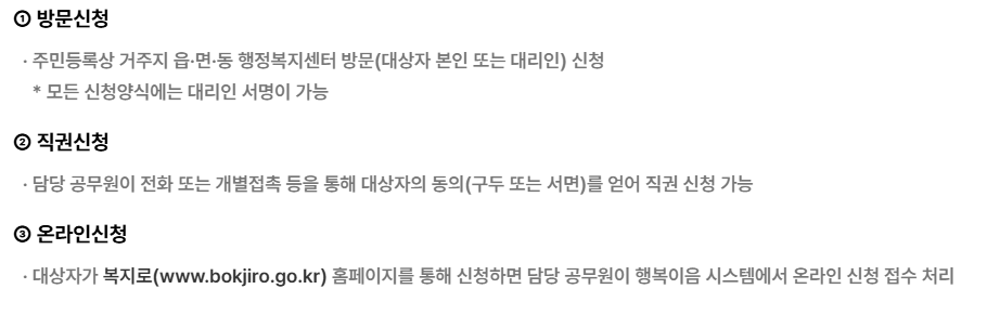 관할 행정 복지센터 : 직접 방문 또는 유선문의