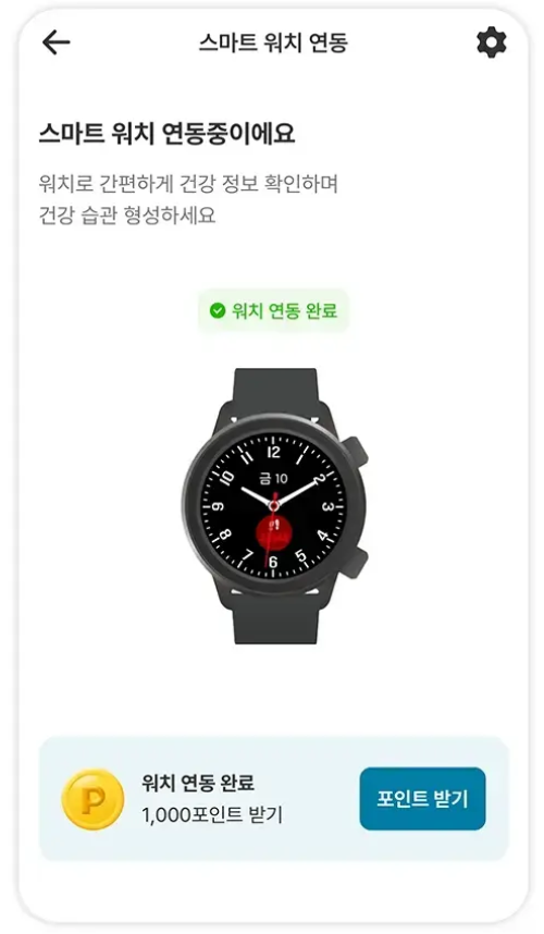 연동방법은 앱 실행 수 홈에서 워치연동을 클릭하고, 내 스마트워치 기기를 선택한후 블루투스를 통한 자동연결또는 인증을 진행하면 됩니다.
