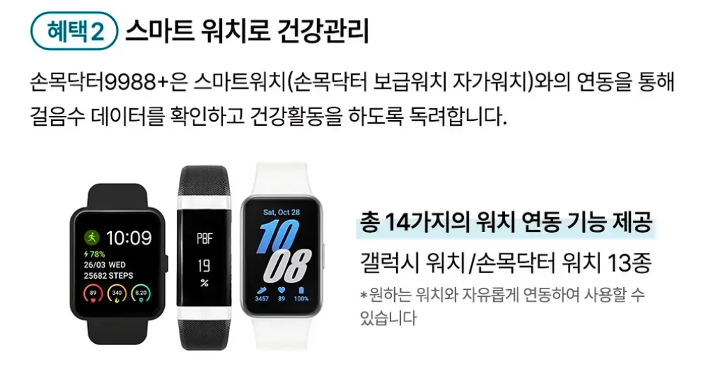 연동가능기기는 삼성 갤럭시워치시리즈 또는 서울싱 제공 손목닥터전용워치 14종이 가능합니다.