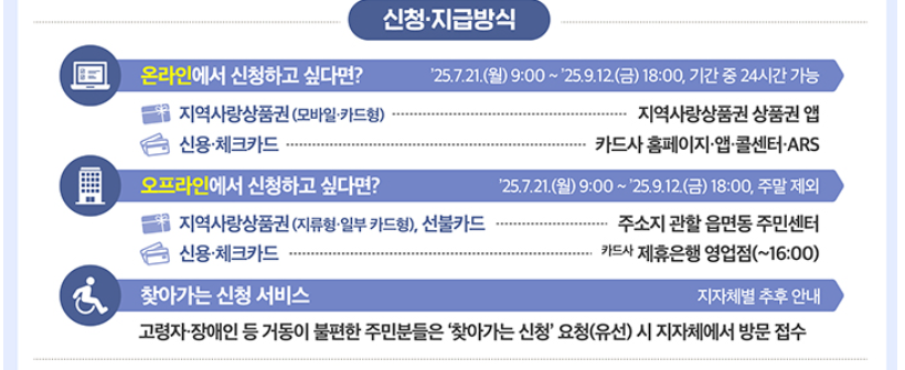 주소지 관할 읍면동 행정복지센터를 직접 방문해 신청하고, 현장에서 실물 형태로 쿠폰을 수령할 수 있습니다.