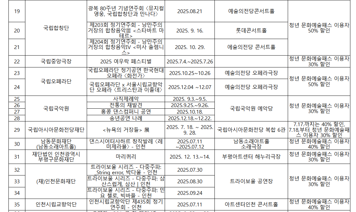 청년 문화예술패스를 통해 할인 받을 수 있는 콘텐츠는 매우 다양합니다.