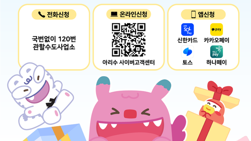 컴퓨터나 스마트폰으로 서울시 아리수 사이버 고객센터에 접속해 직접 신청 할 수 있습니다.