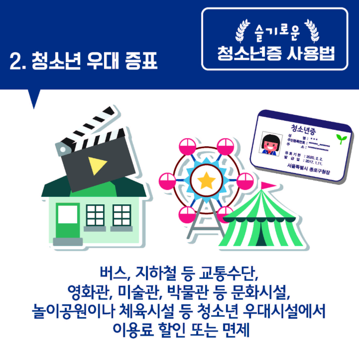 위 할인 혜택은 모두 청소년증 소지자에 한해 적용되며, 기관,업체의 개별정책에 따라 적용 범위가 다를 수 있으니 사전 확인이 중요합니다.