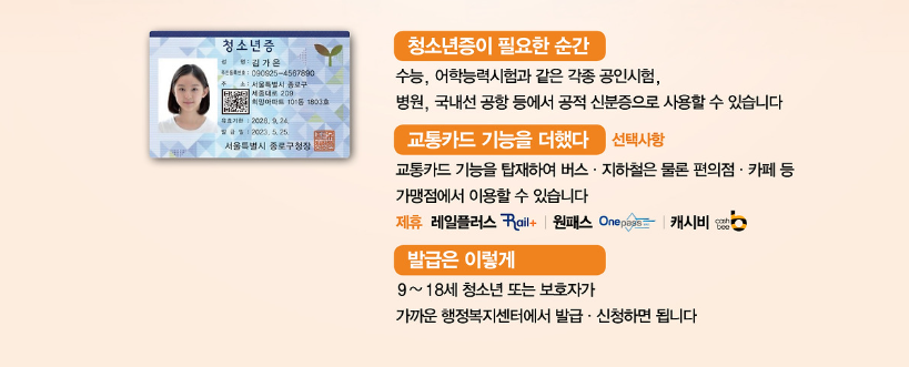 공식적인 신분증이 없어 곤란했던 적이 있거나, 대중교통이나 문화시설에서 청소년 할인 혜택을 제대로 누리지 못했던 기억이 있다면, 이번 여름방학을 놓치지 마세요