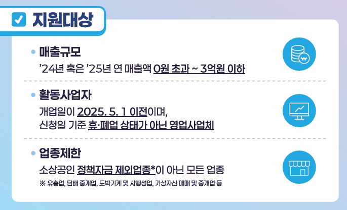신청 대상은 다음 조건을 모두 충족하는 소상공인