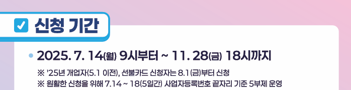2025년 개업자, 선불카드 신청자는 2025년 8월 1일부터 신청 가능 합니다.