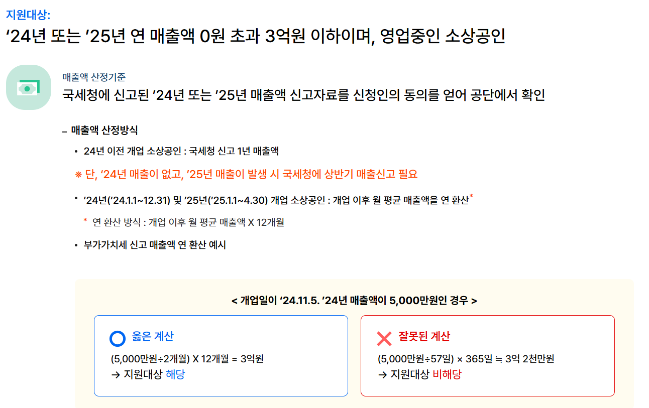 이때, 24년 매출이 0원인 경우는 지원 대상에서 제외됩니다.