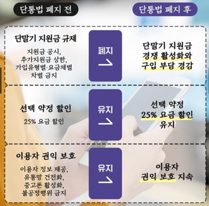 이러한 시대 변화에 맞춰 2023년 12월 단통법 폐지안을 통과시켰고, 2025년 7월 22일부터 전면 폐지 됩니다.