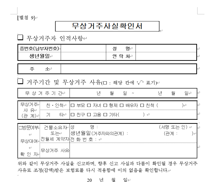 다음은 무상 임대시 꼭 챙겨야할 체크리스트 입니다.