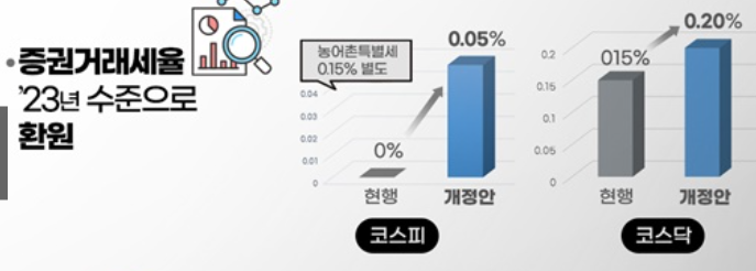 코스피 거래세율 기존 0.15% 에서 0.20% (농어촌특별세 포함)