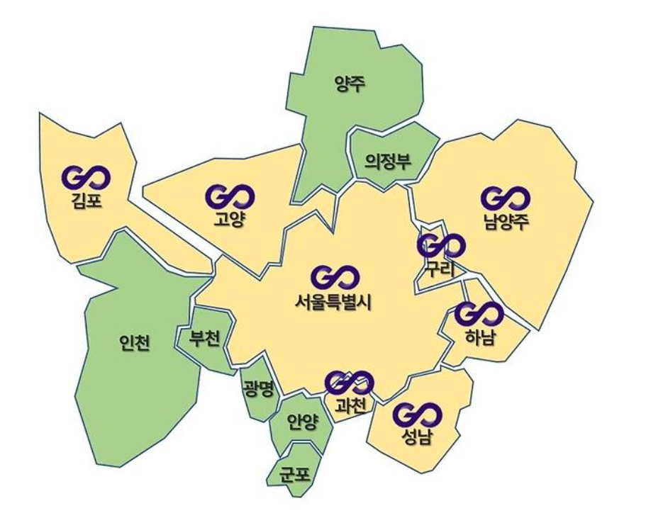 경기권 - 고양시(일산), 과천시, 김포시, 남양주시, 구리시, 성남시